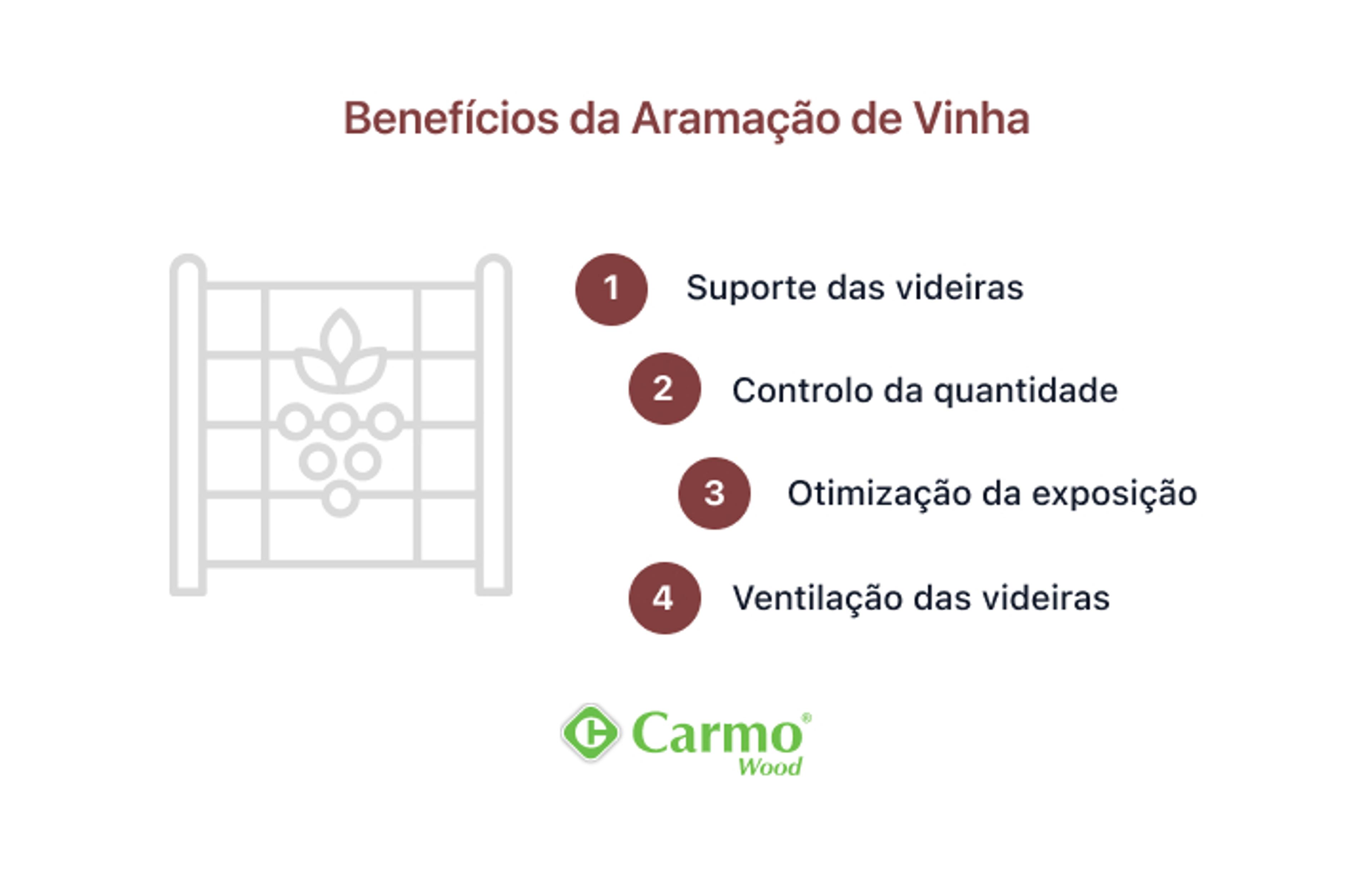 A aramação sustenta e orienta o crescimento das videiras, favorecendo um desenvolvimento saudável e uma maior resistência a fatores externos, como o vento, condições atmosféricas adversas e doenças. Videiras bem suportadas também são mais fáceis de trabalhar e a sua colheita é mais eficiente.