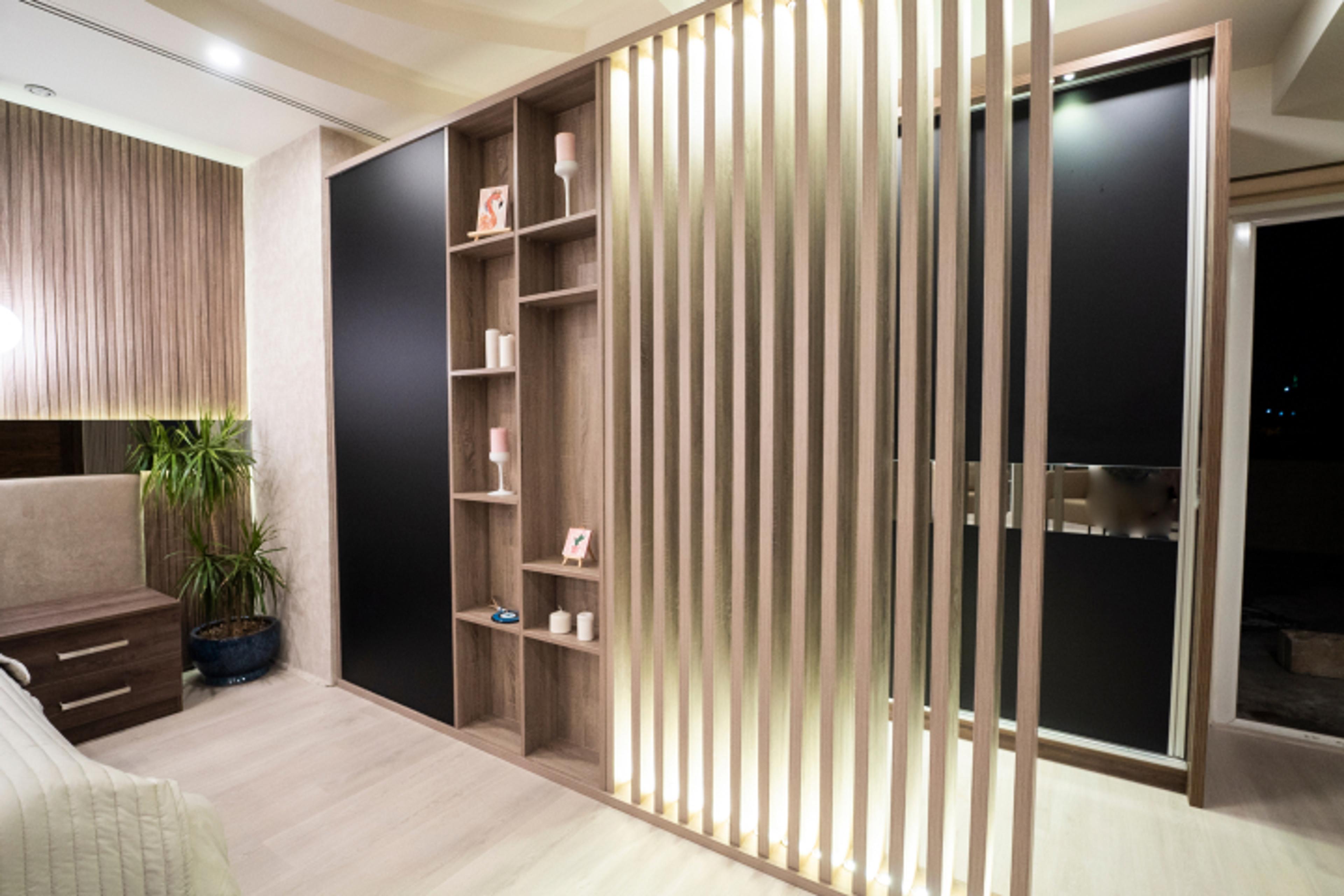 Tem uma parede livre no seu quarto? Um closet à medida separado por ripas de madeira é um projeto que oferece requinte à divisão, sendo 100% funcional.