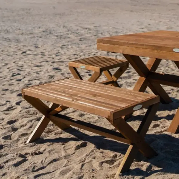 Gamme SudExpress Mobilier Design Mobilier et Équipements d’Extérieur CarmoForm Banc SudExpress Double Pieds en X Banc SudExpress double avec pieds en X en bois traité.