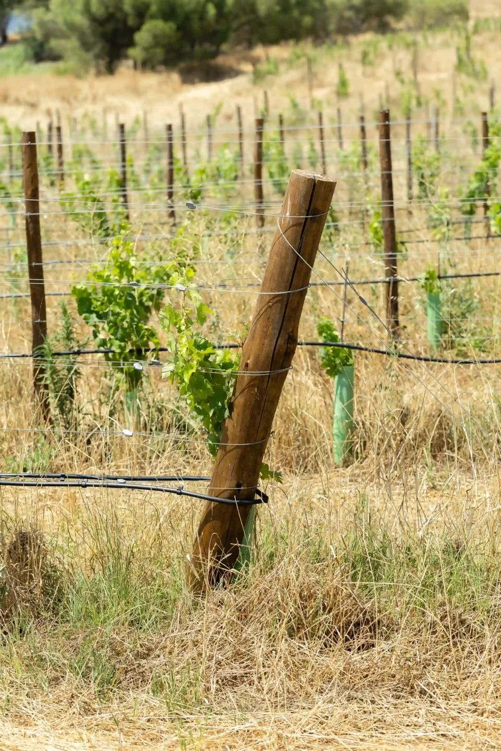 O poste de cabeceira é a peça principal na estrutura de uma aramação. São eles que suportam a tensão dinâmica a que irão submeter-se as fileiras das vinhas. Por isso, é-lhes exigida toda a robustez, força e flexibilidade.